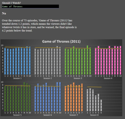 I pull down the IMDB voting stats and calculate the trend-lines for TV shows.